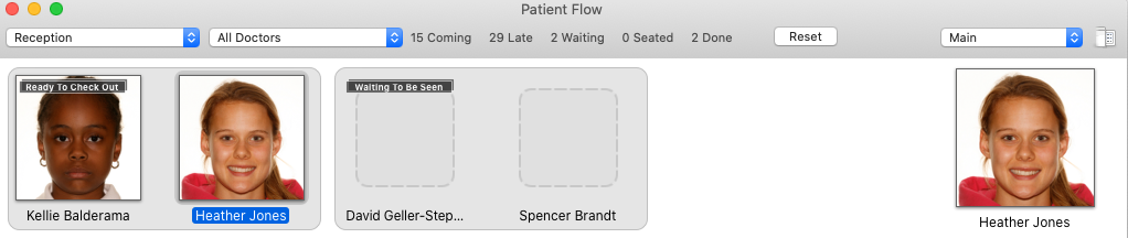 Grouped images in the Reception View, the patient is checked in and ready to be seen.