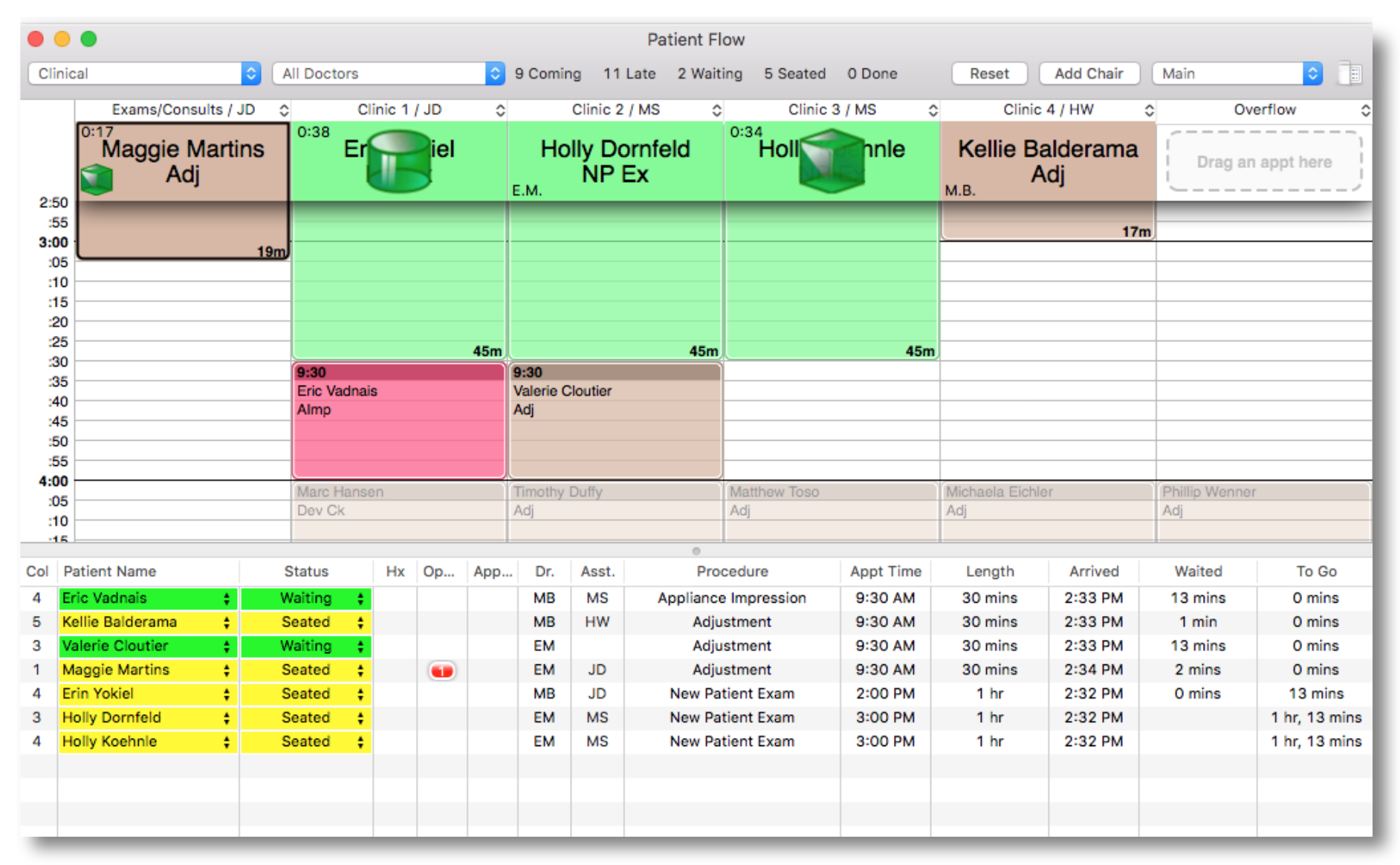 - If more than one doctor needs to see the patient, multiple icons display.