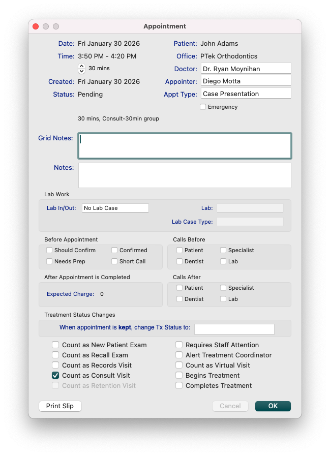 - Doctor Time - Clicking the DT button will show/hide the doctor’s time to the left of the Appointment Book.
