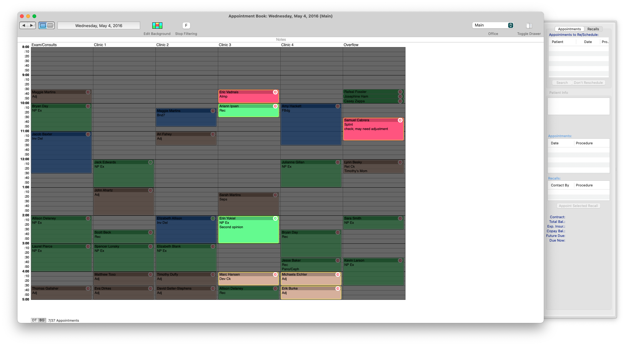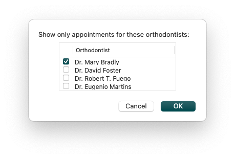 - The Filter Appts feature allows you to select the specific doctor(s) to display the appointments assigned to the selected doctor. The assigned appointments will be illuminated.