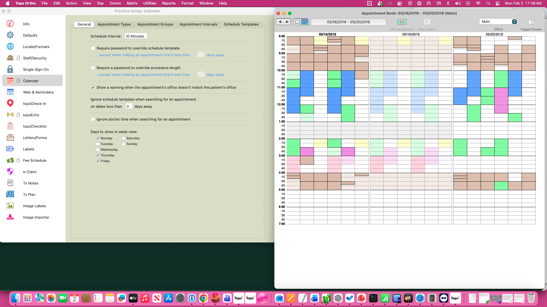 Within Tops Ortho>Practice Set-up>General, how many days visible in the week view is customizable.