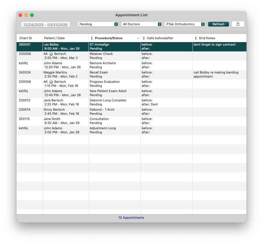 - Access the filter field and select Pending from the dropdown menu. Note: Update the doctors and locations fields, if needed.