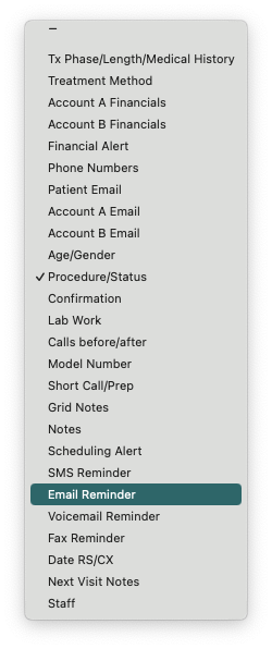 - The information displayed in the columns can be updated. Click the arrows icon within the column header to view a list of options.