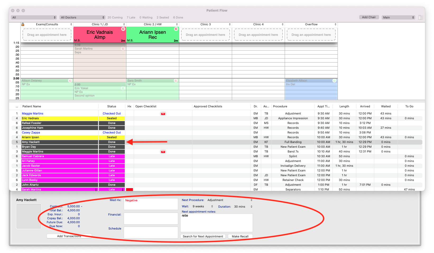 - The patient must have a Status of Done. Click on their picture or name within the grid.