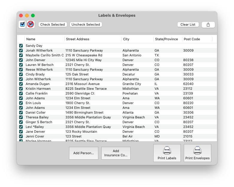 - Hold down the command key and click the patients' names to include in the labels.