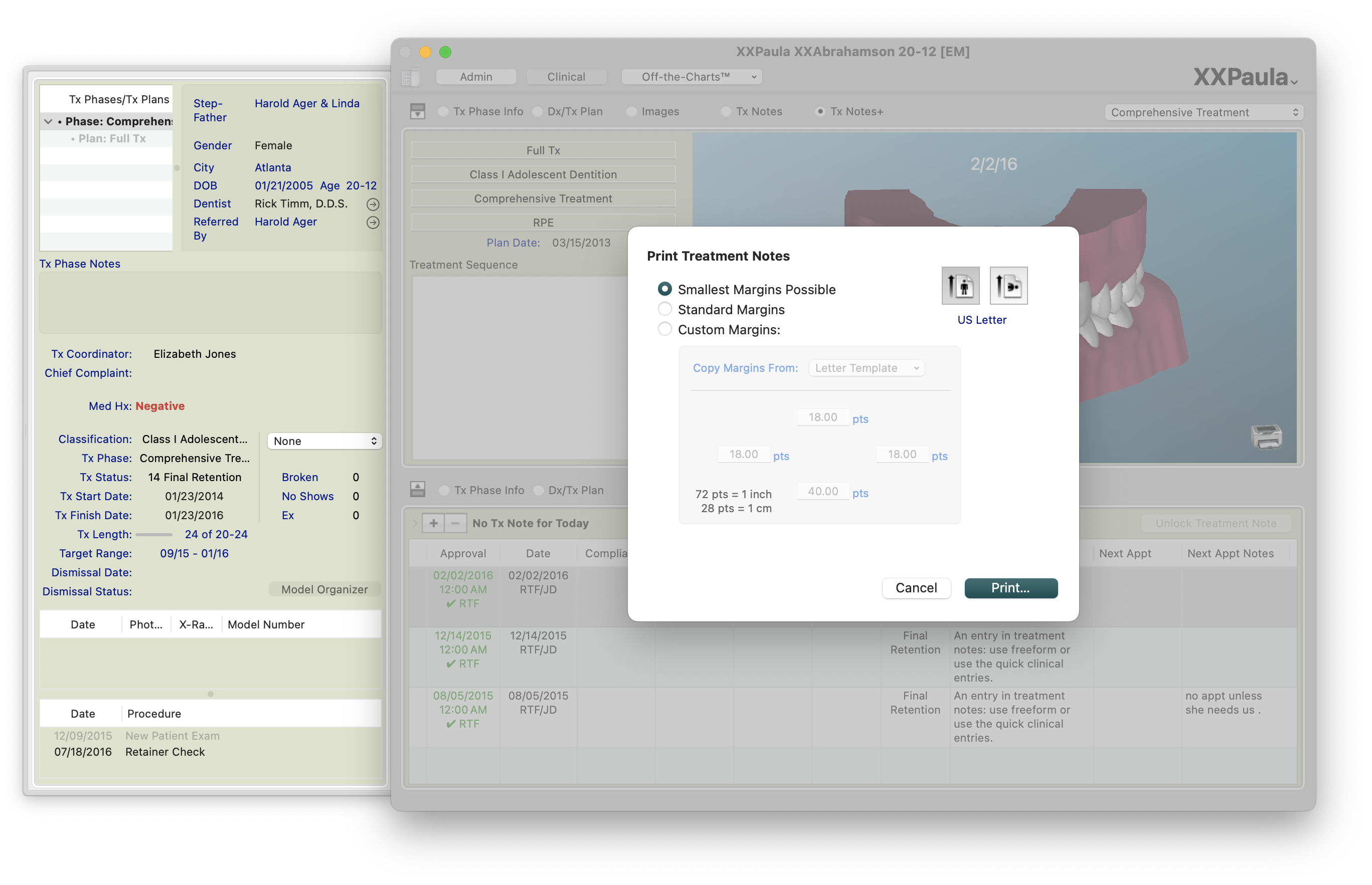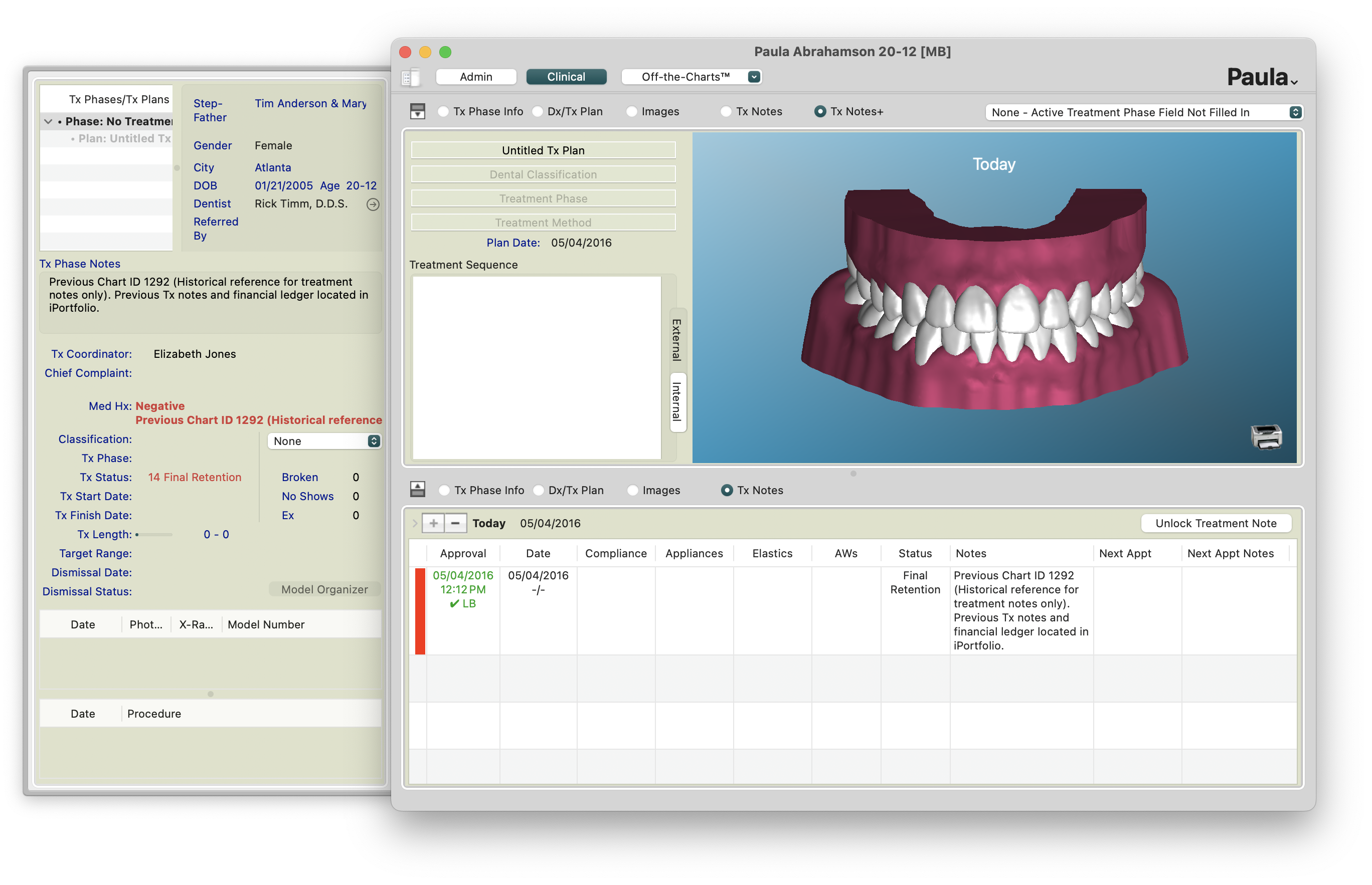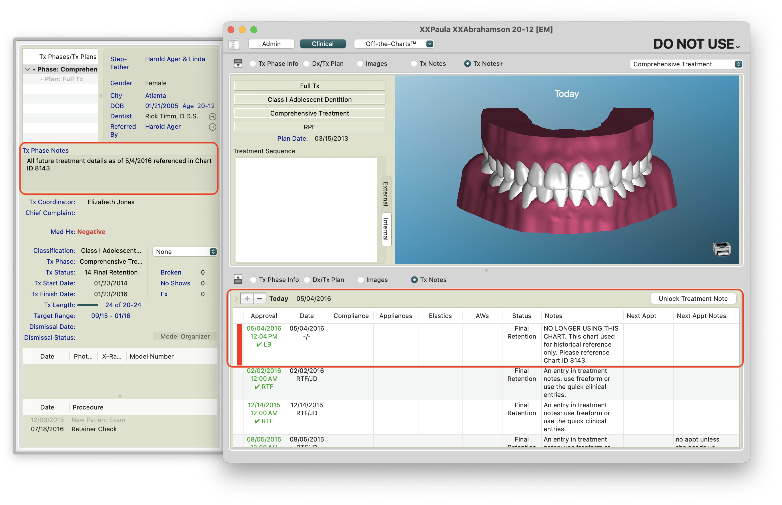 Command-P to print Treatment Notes and Save as a PDF - In the old chart, reference the new chart ID in the Notes, Scheduling Notes, Financial Notes and Treatment notes.