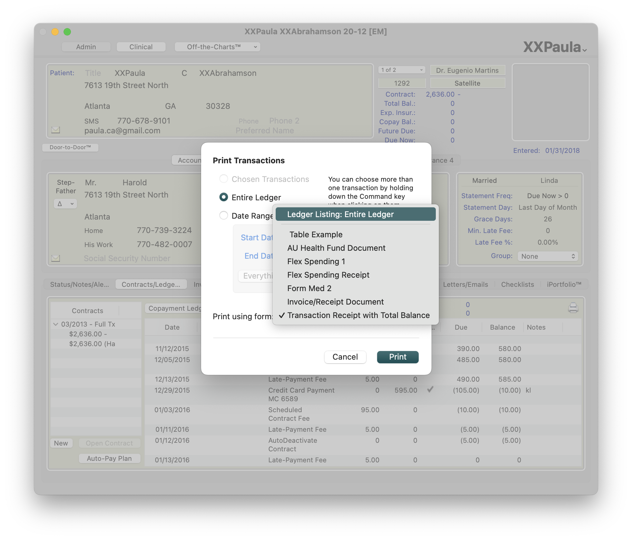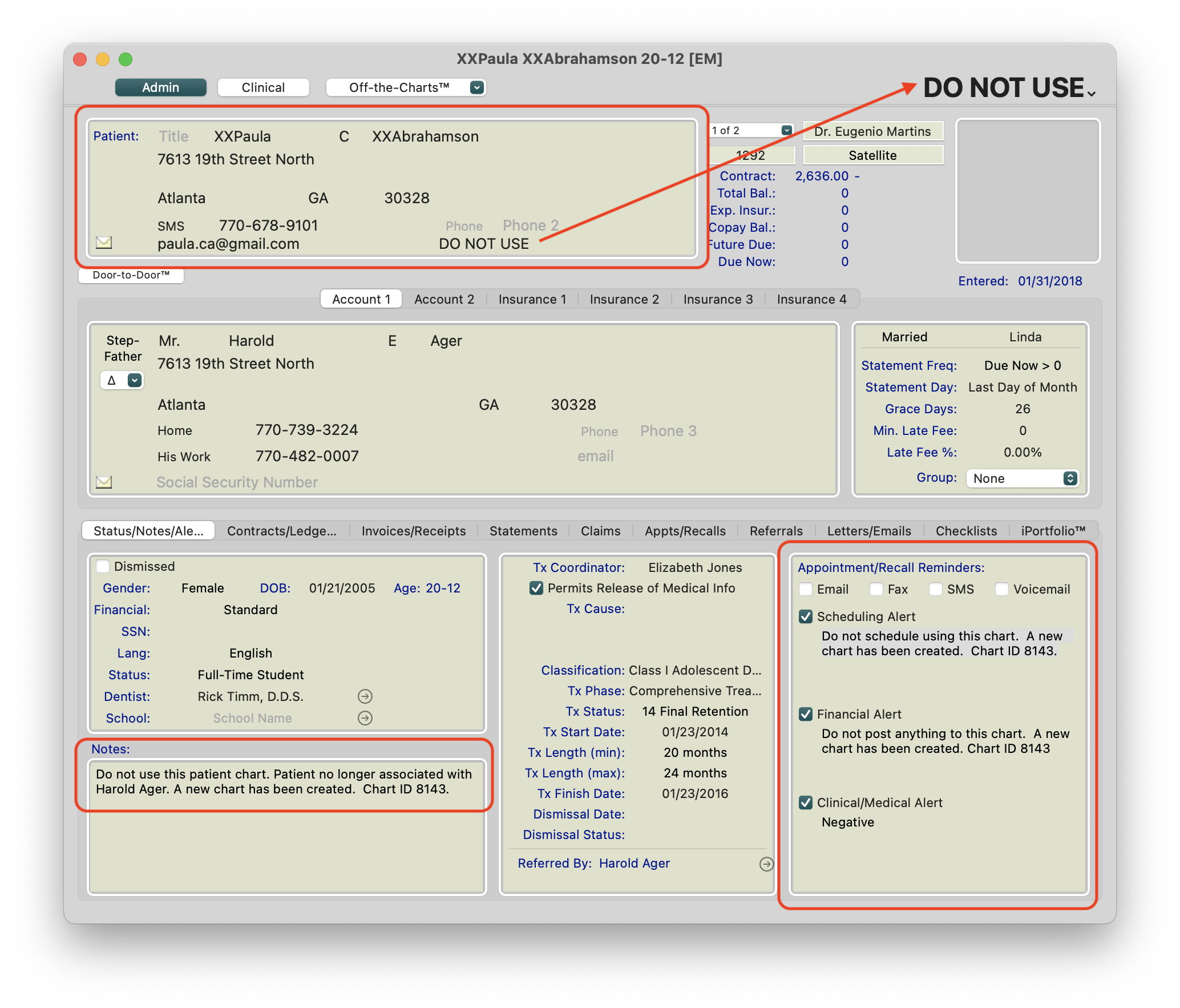 - If applicable, in the old chart, deactivate the active contract and/or adjust off any balance as a transfer credit or charge to the new patient's chart.