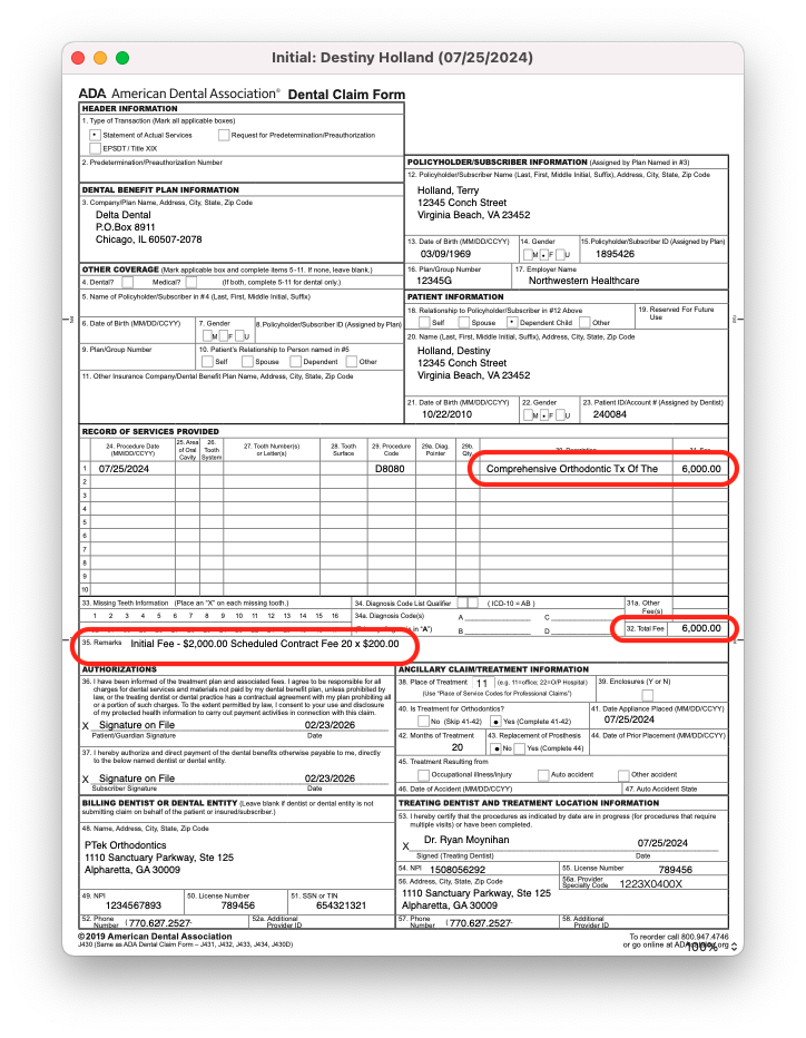 - Create the contract with the full treatment fee amount with expected insurance for the full expected insurance amount.