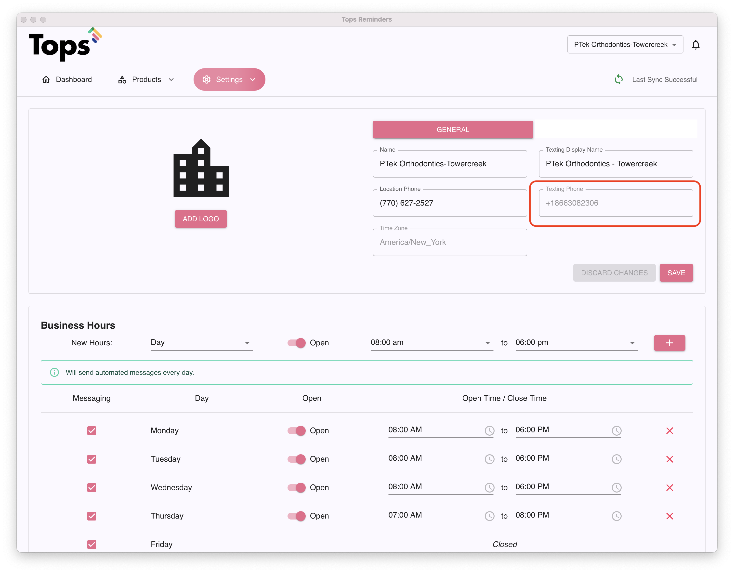 - You Texting phone number will be listed under your practice details.