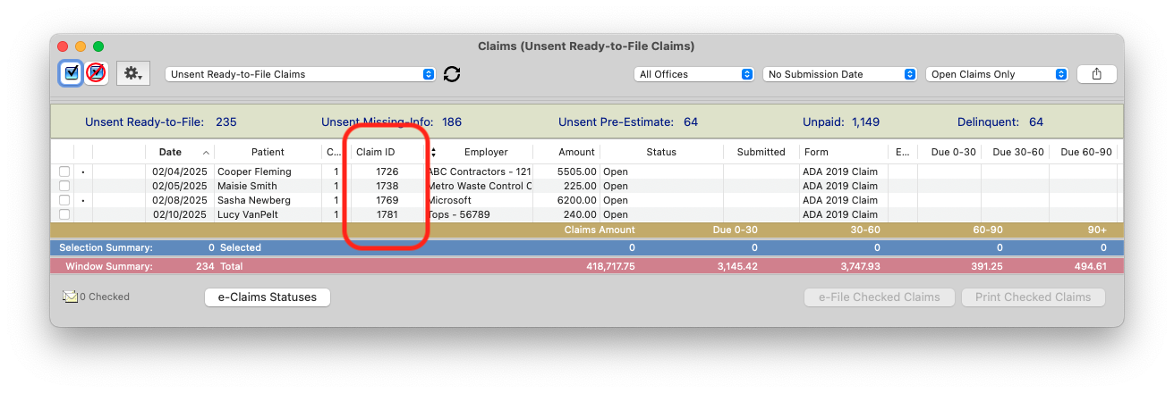 - Go to Matrix>Claims> Claims>Unsent Ready to File Claims and locate the claim.