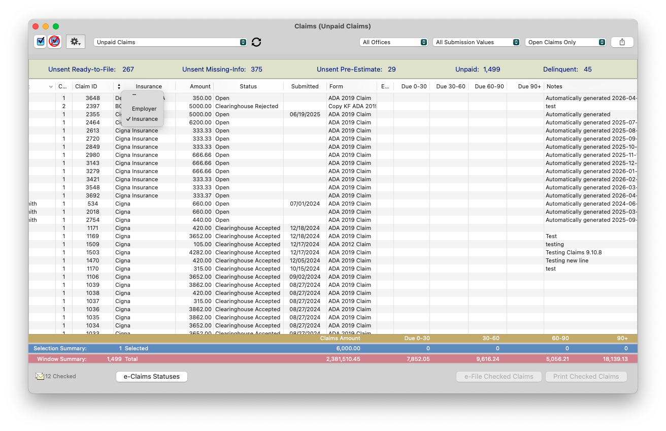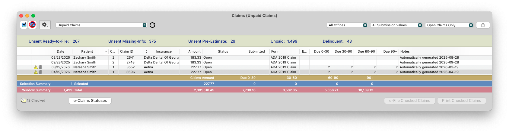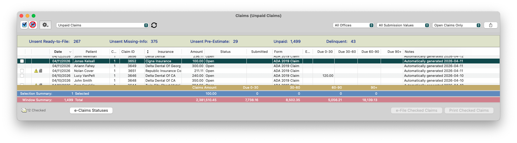 - To see all of your Unpaid Claims, set the filters from left to right to: