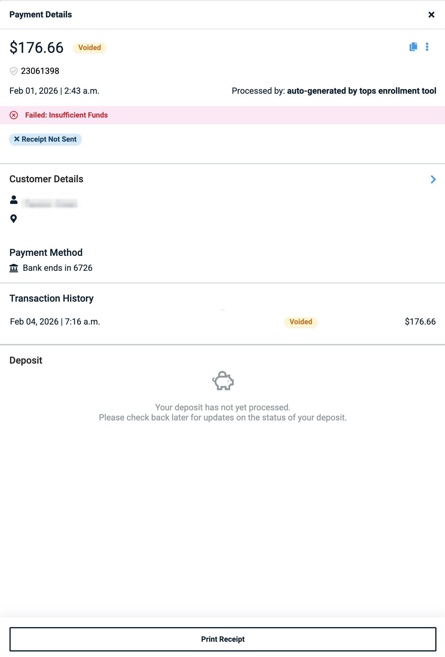 When TopsPay charges fail, visit the TopsPay portal to find out why. Below are steps to locate each declined payment, whether a credit, debit or ACH payment and how to view the decline reason or code. Keep scrolling for a list of common codes to help with understanding the "why" behind a decline!