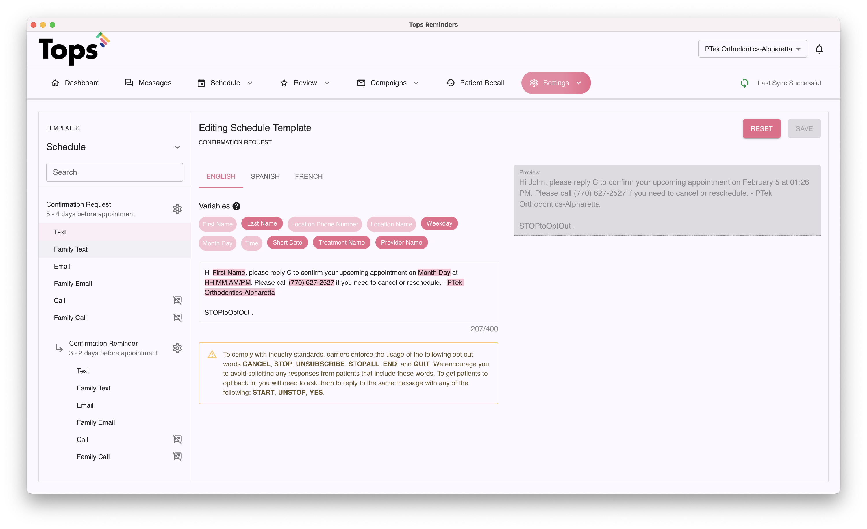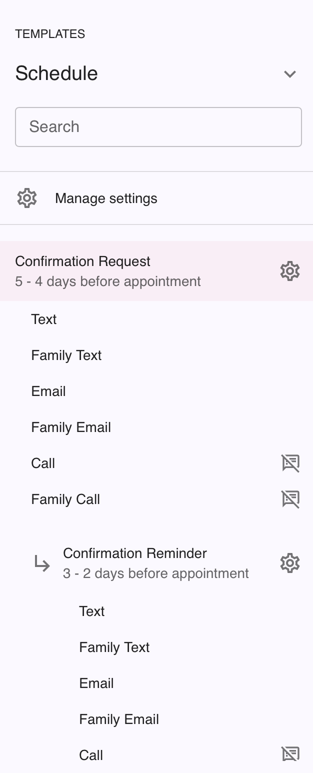 Confirmation Requests are different from scheduled Appointment Reminders and are sent independently. A Confirmation Request requires an action from the patient to confirm their appointment. While patients may view this as a reminder, it is a distinct message designed specifically to request confirmation. Scheduled Appointment Reminders are sent separately from Confirmation Requests and Confirmation Request reminders.