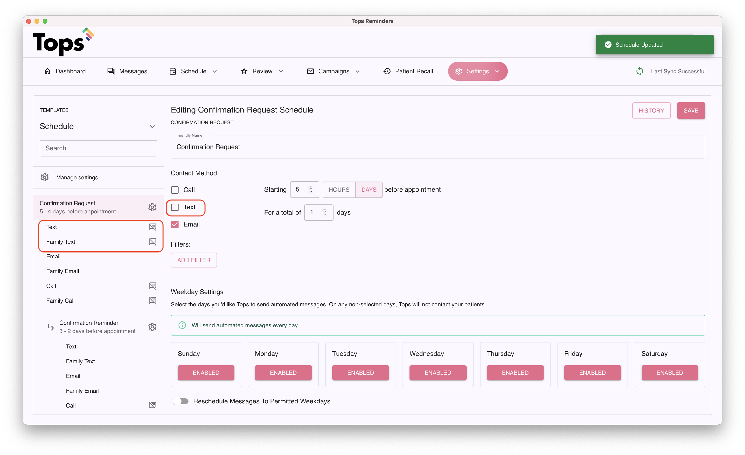 IMPORTANT: A Confirmation Reminder cannot be sent unless a Confirmation Request has already been sent. If a patient confirms after receiving their initial Confirmation Request, then they will not receive the Confirmation Reminder.