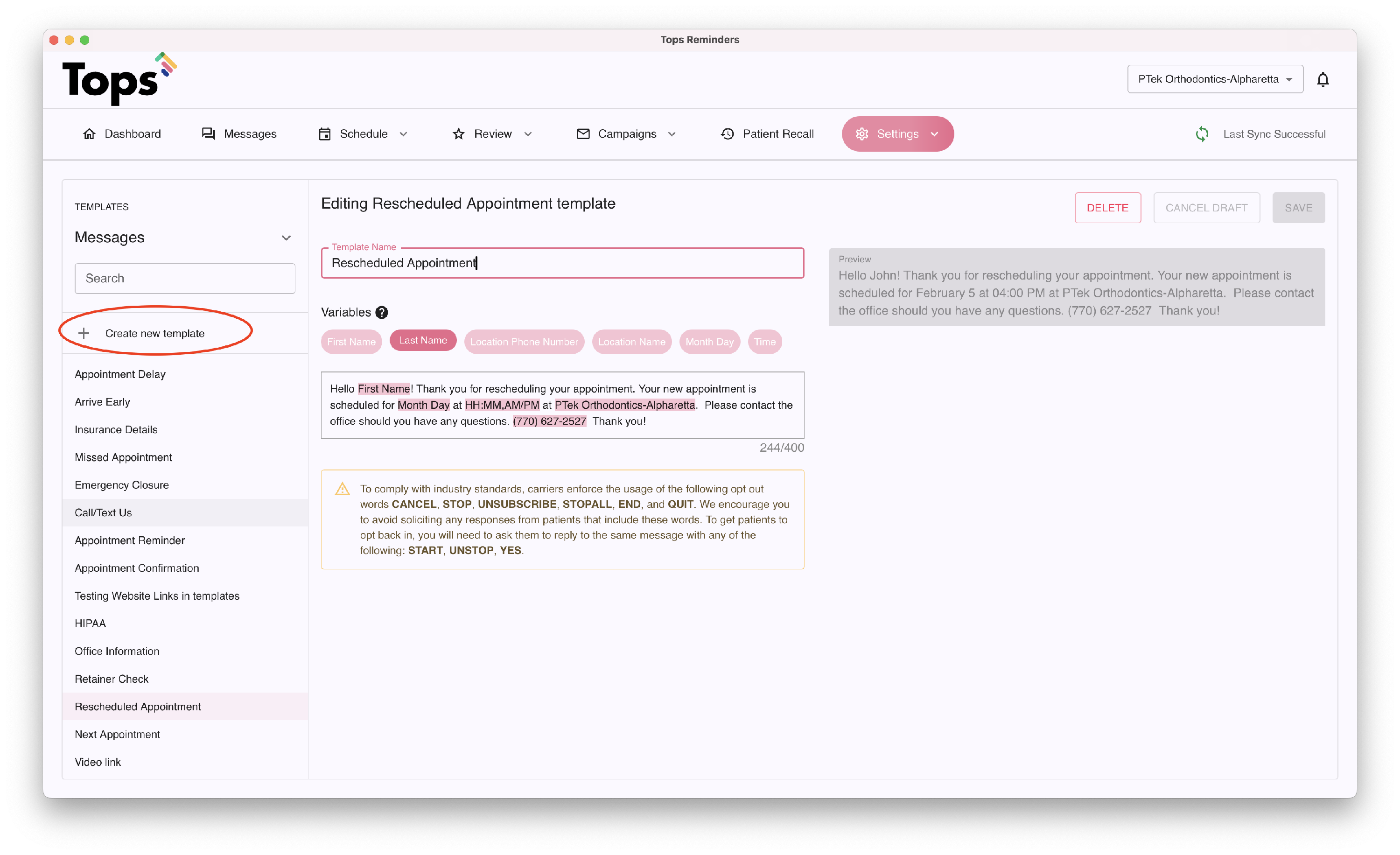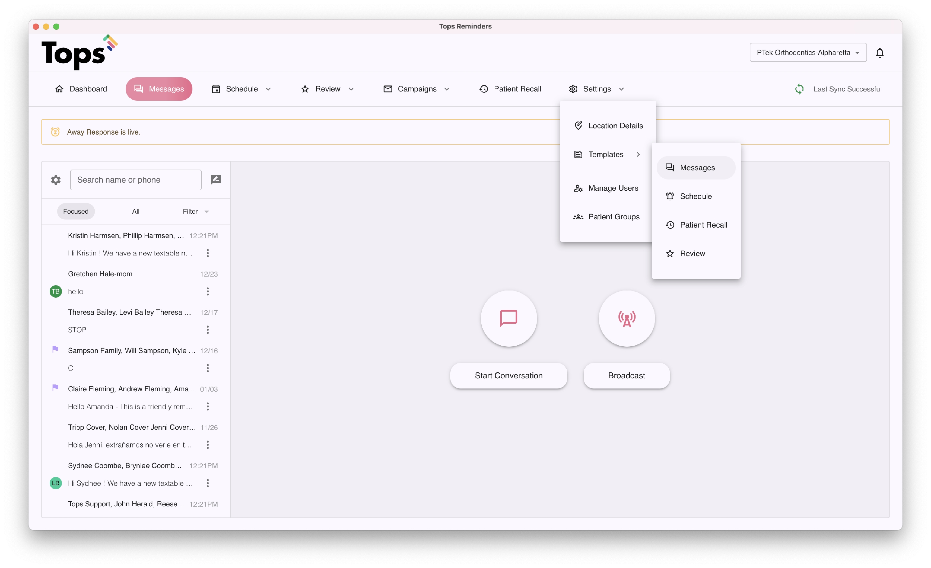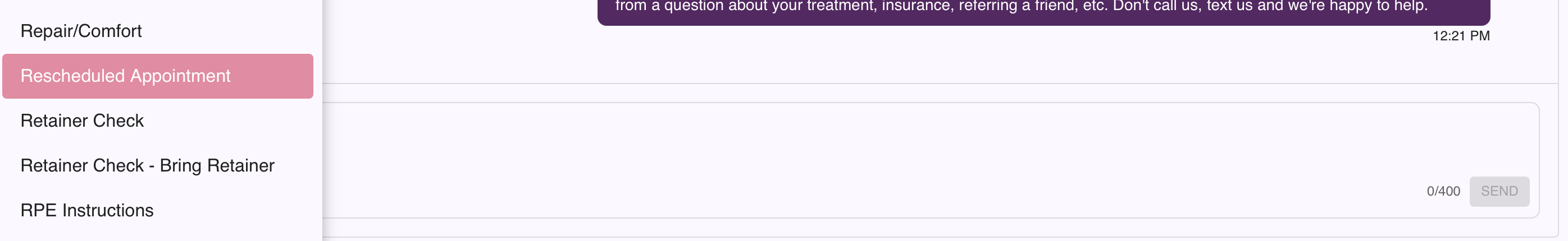 Become more efficient and have templates ready to go when you need to send a quick text message. Whether to a single patient or to a larger group, templated messages are a time saver!