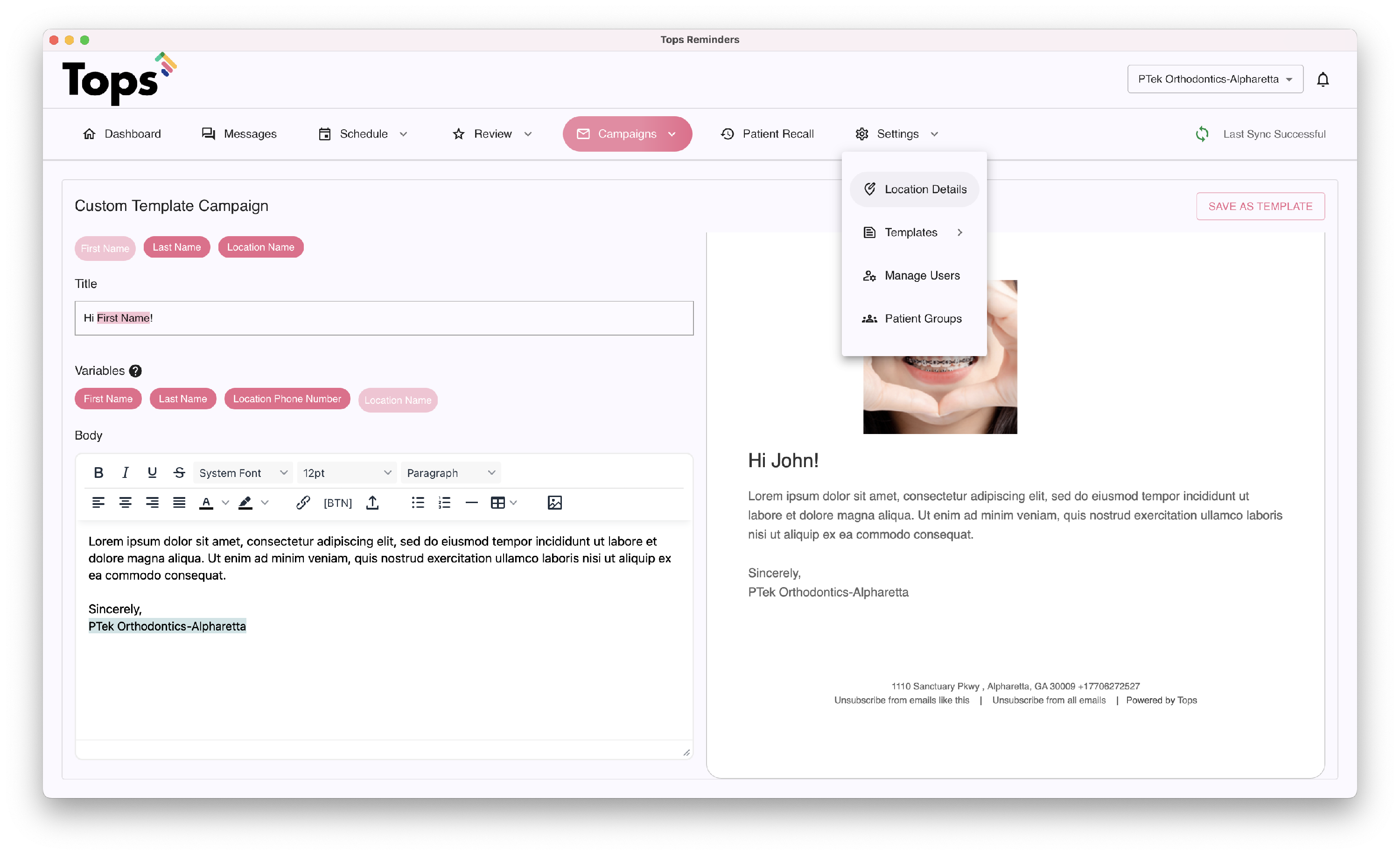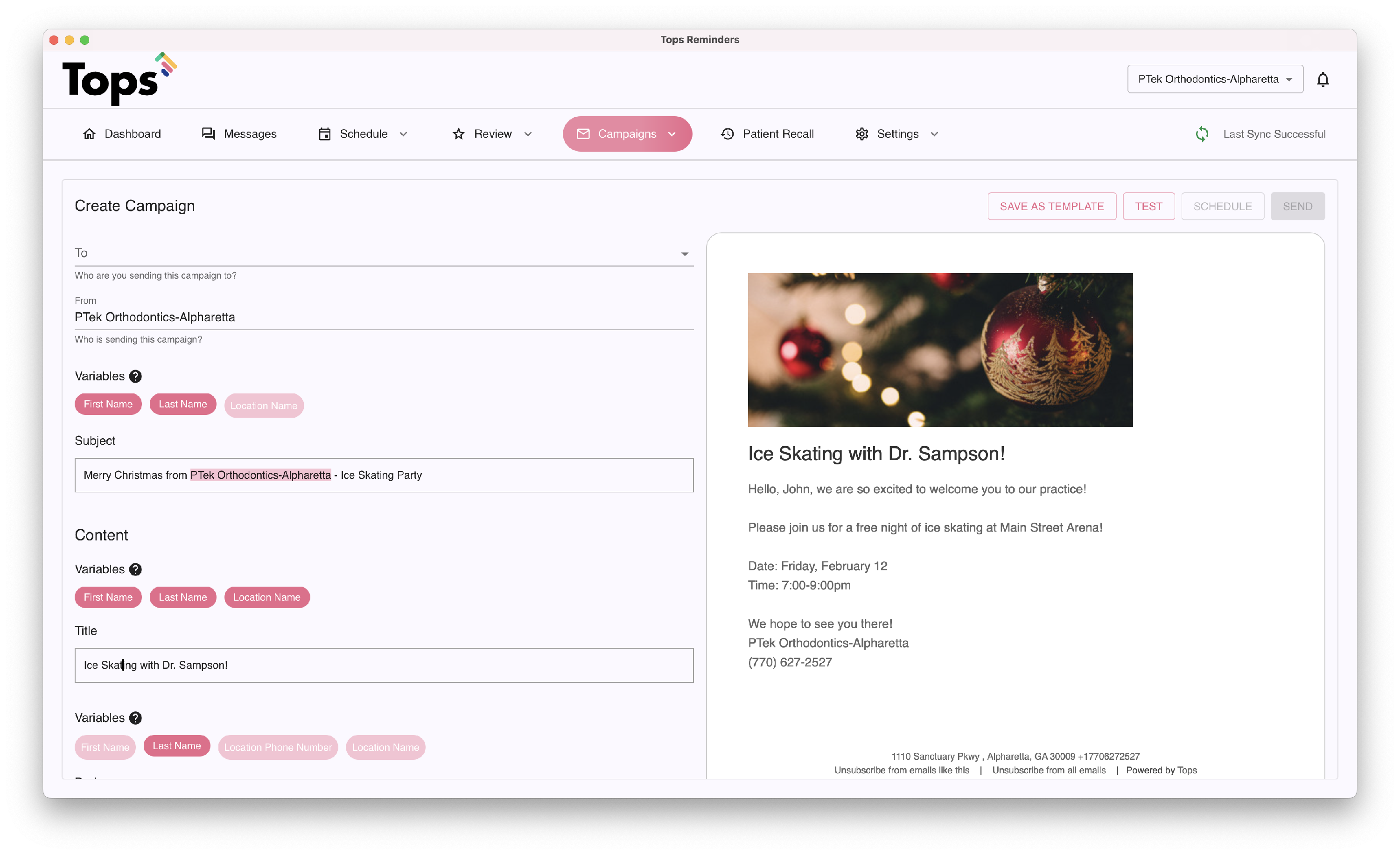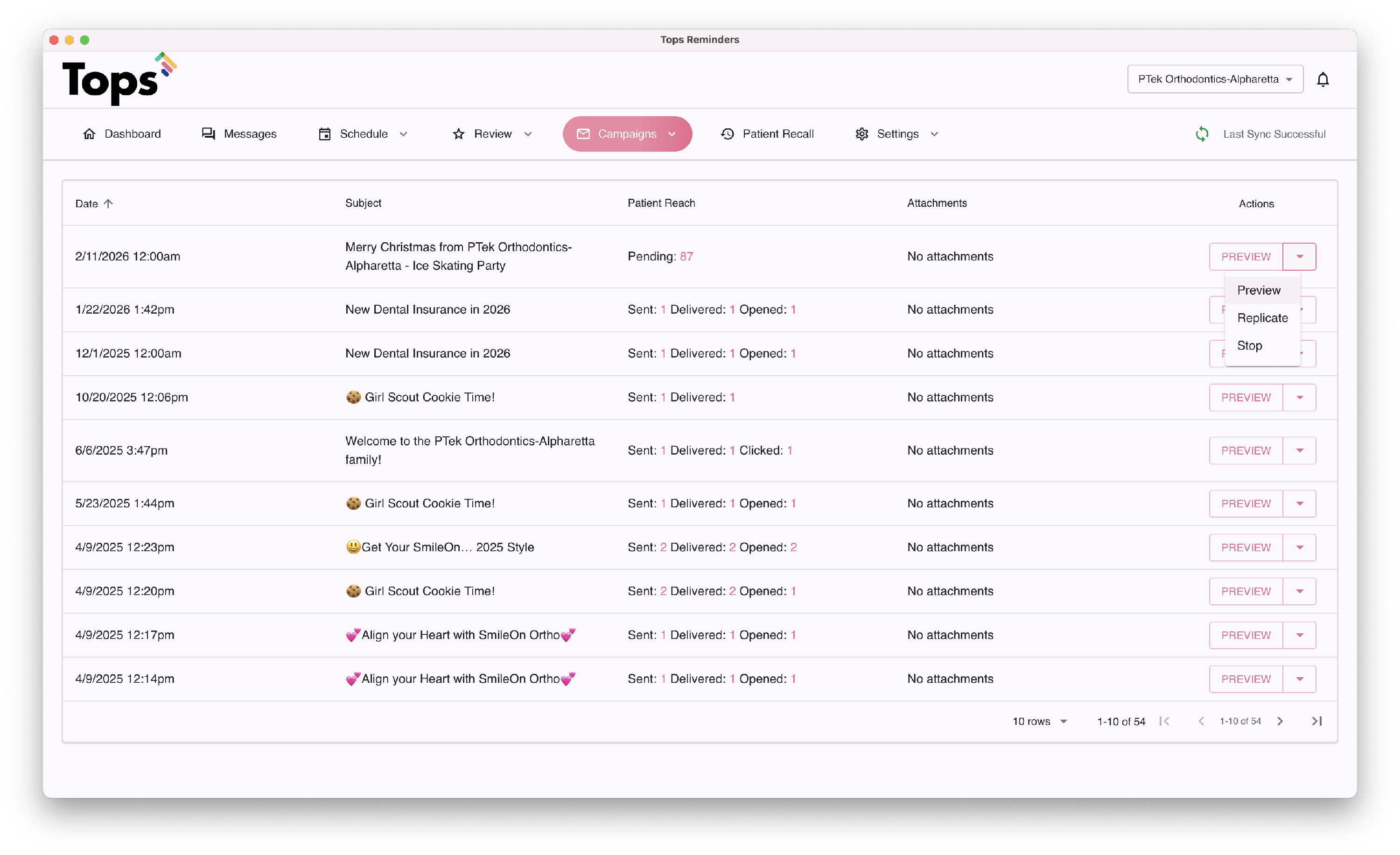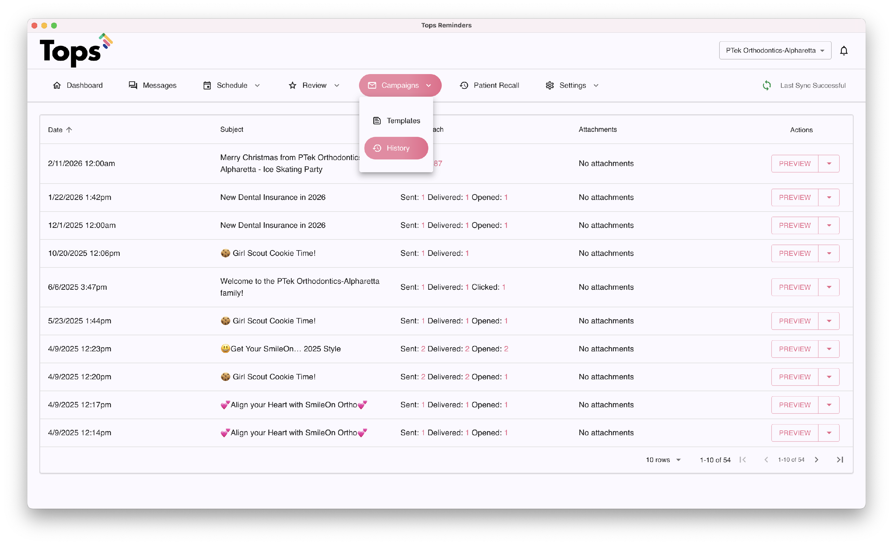 Practices with full TopsDPX can send targeted email campaigns to patients and referrers! It's a great way to send newsletters, marketing flyers and announcements.