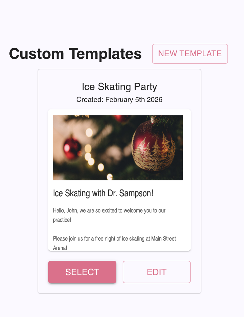 - Choose a default template by clicking Select. Note: The images in the default templates cannot be changed.