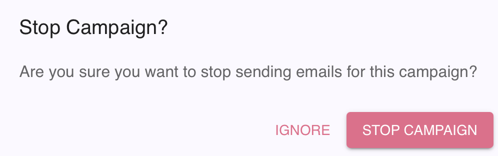 If you choose to Stop a campaign, Tops will provide you the ability to confirm the action.