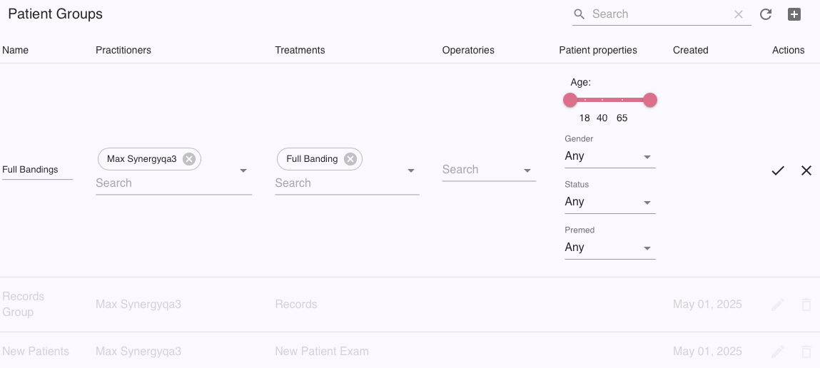 - When you are satisfied with your selections, click the checkmark to save the Patient Group. You can remove or delete Patient Groups at any time.