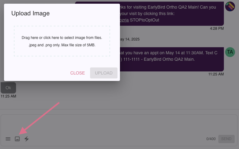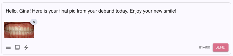 - You will see your image as a thumbnail in your message draft. To remove it, click the gray X icon.