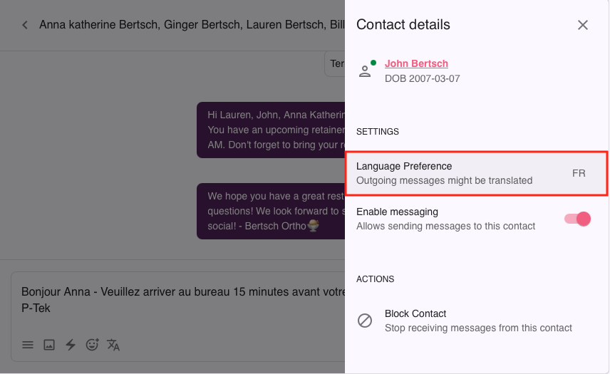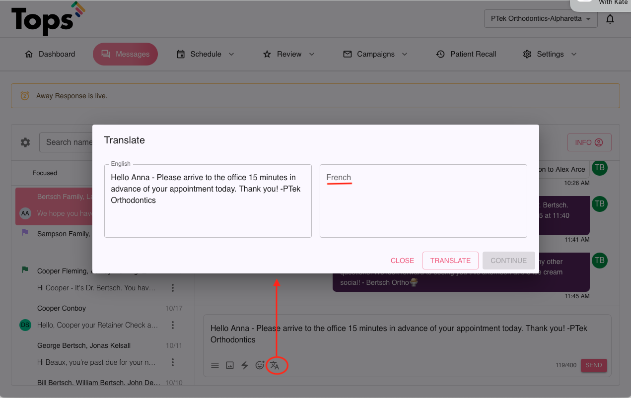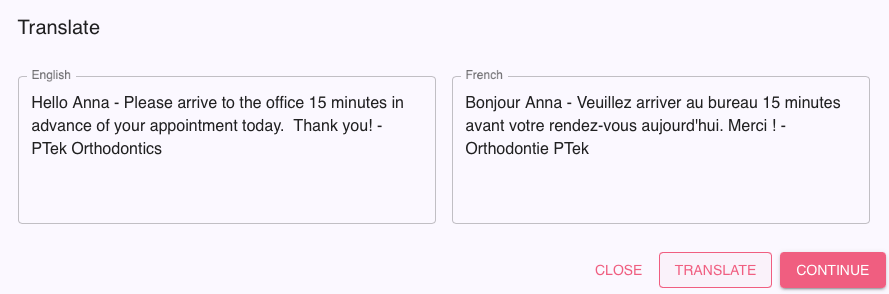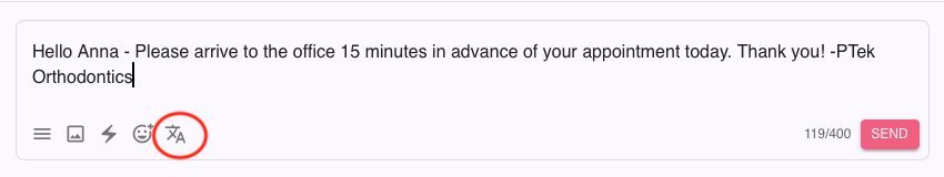 You can now send an outgoing text to your patient, translating it into their preferred language.