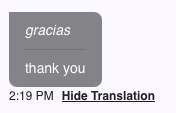 - Display: Translated messages appear below the original message