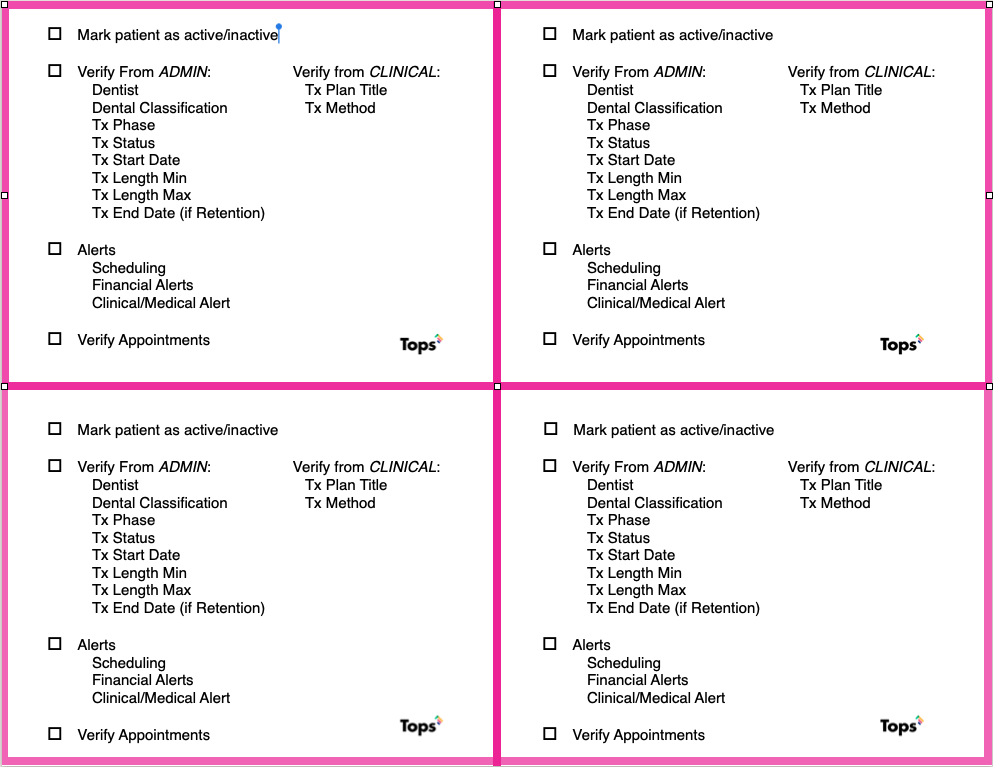 - See the clinical data entry list below. You can screenshot the image below and print and place by each workstation as a cheat sheet: