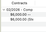 - Active contracts will show one or two dots next to the contract total.