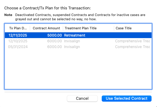 - Select Initial Fee and select the recorded contract you wish to activate. Click Use Selected Contract.