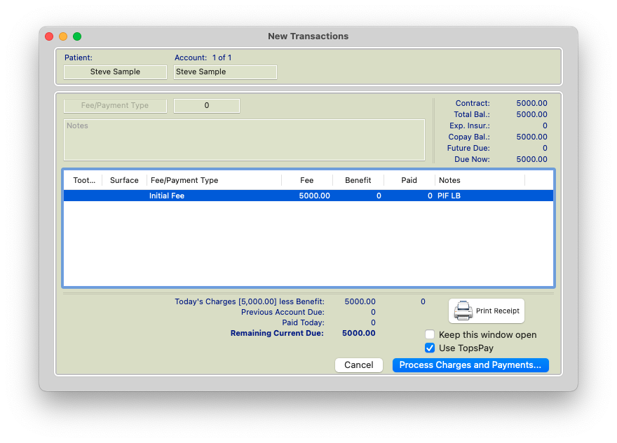 For example, if a patient has a $5000 contract and their downpayment is a discounted $4850 if they pay in full, the initial fee would still be $5000. The initial fee includes the patient's downpayment of $4850 plus the 3% pay-in-full courtesy of $150 (3%).