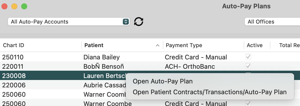Right-click and choose Open Auto-Pay plan