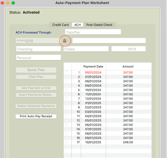 - In the auto-pay plan, the failed ACH scheduled payment will be red