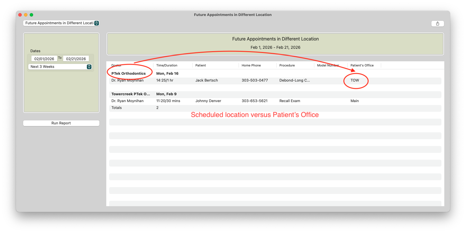 - Go to Reports > Future Appointments in Different Location