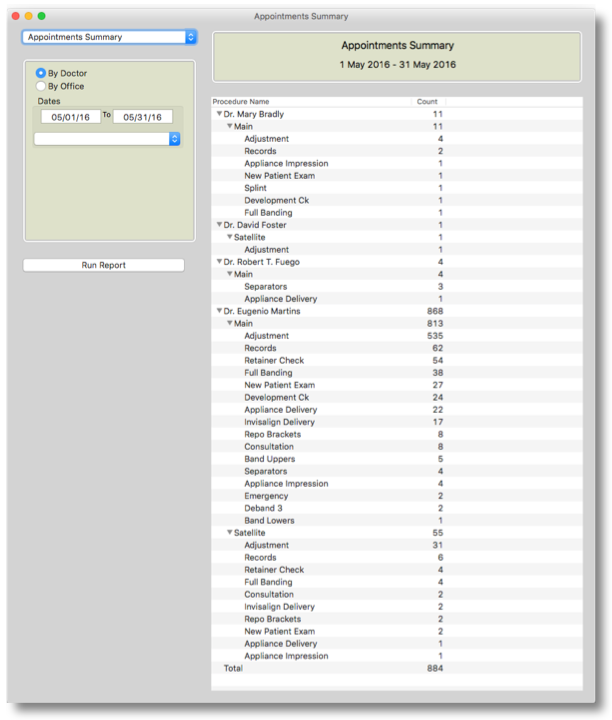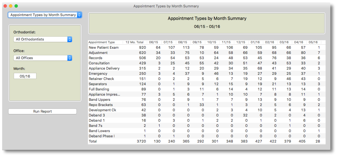- Go to Reports >Appointment Types by Month