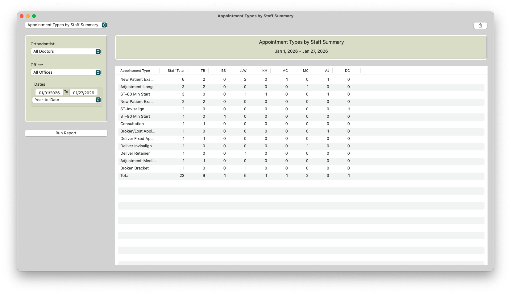 - Go to Reports >Appointment Types by Staff