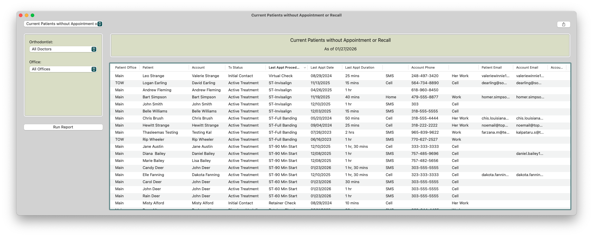 - Go to Reports>Current Patients Without Appointment or Recall