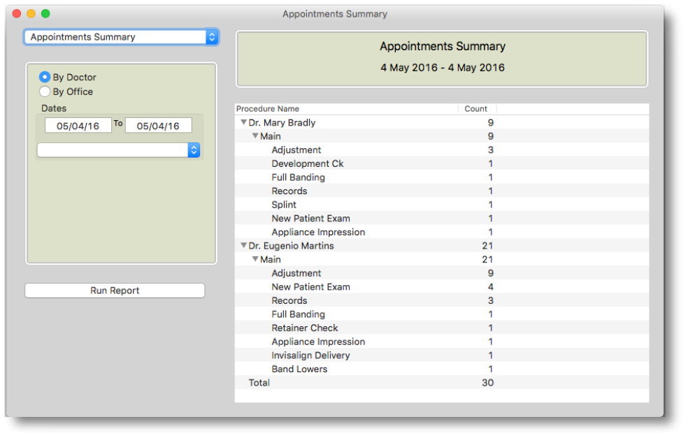 - Go to Reports >Appointment Summary