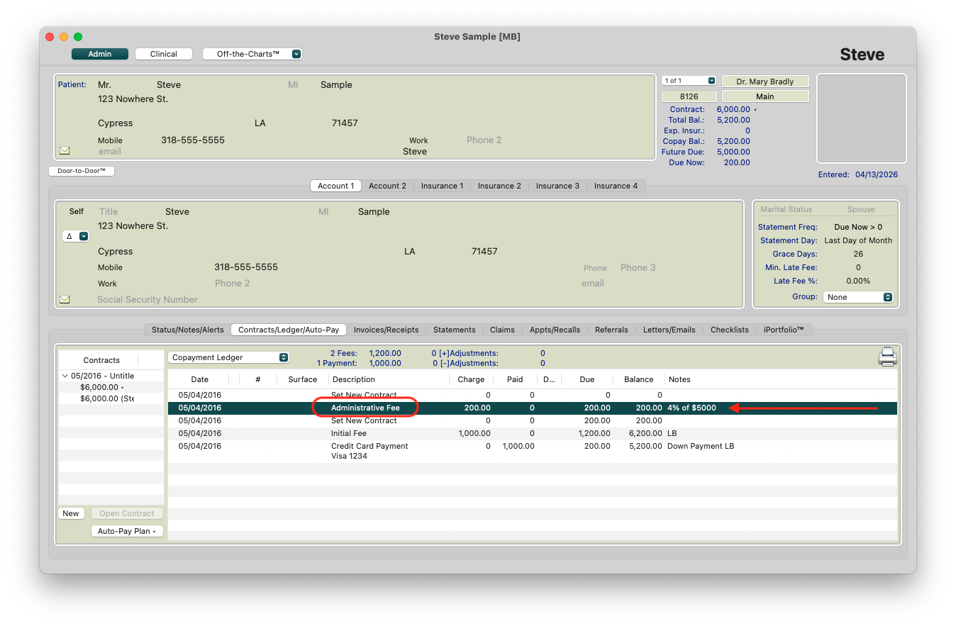However, in some cases, such as long-term contracts or recurring payment plans, it may be necessary to post administrative fees separately in order to properly structure and manage the patient’s financial arrangement or to track the administrative fee for accounting purposes.