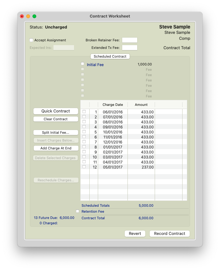 - Contract reflects $6000, with $5000.00 in scheduled monthlies