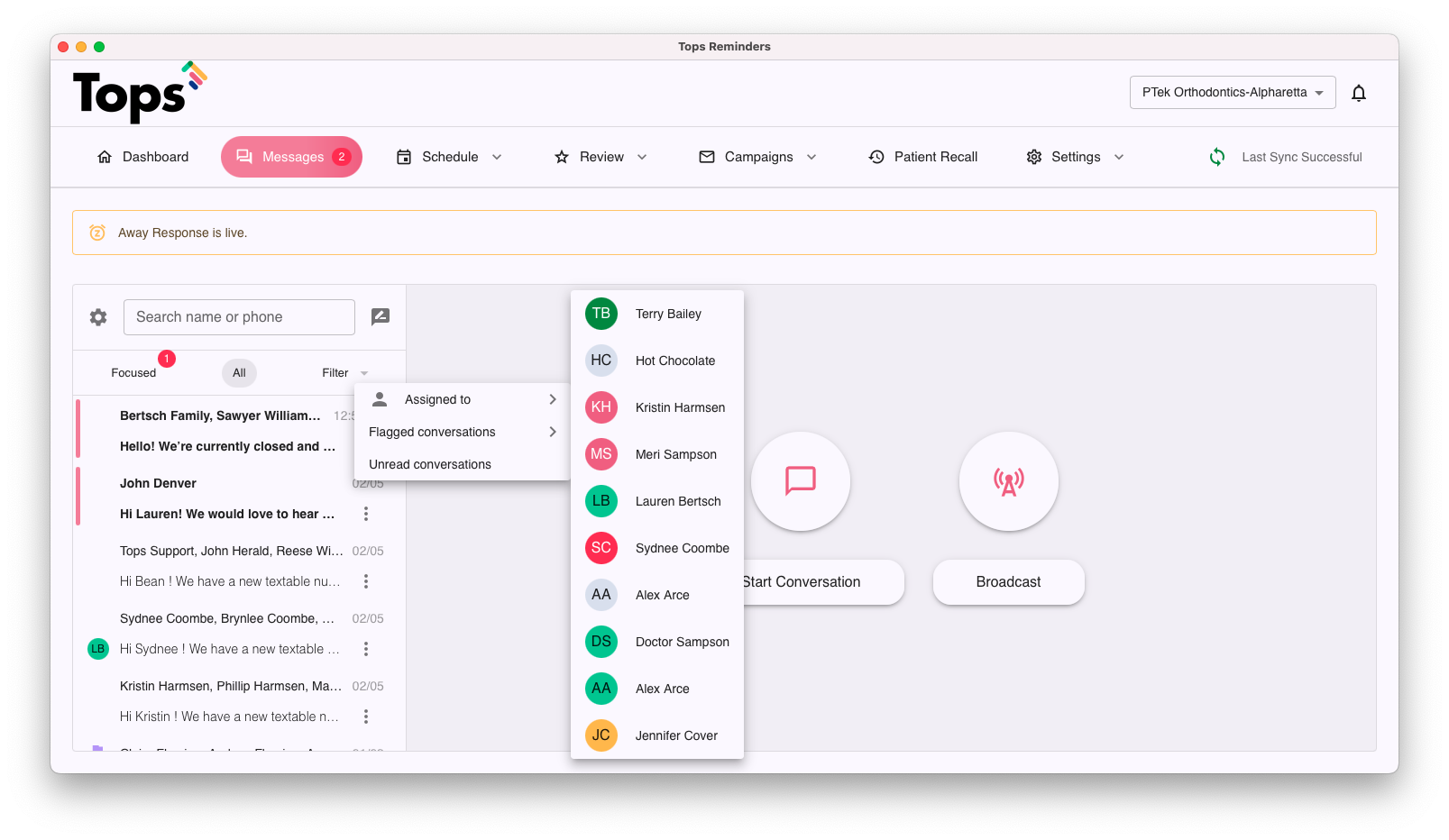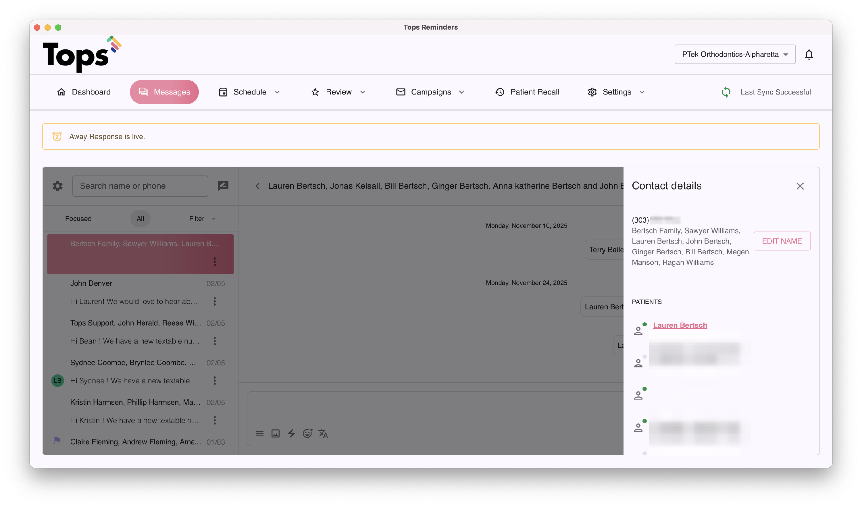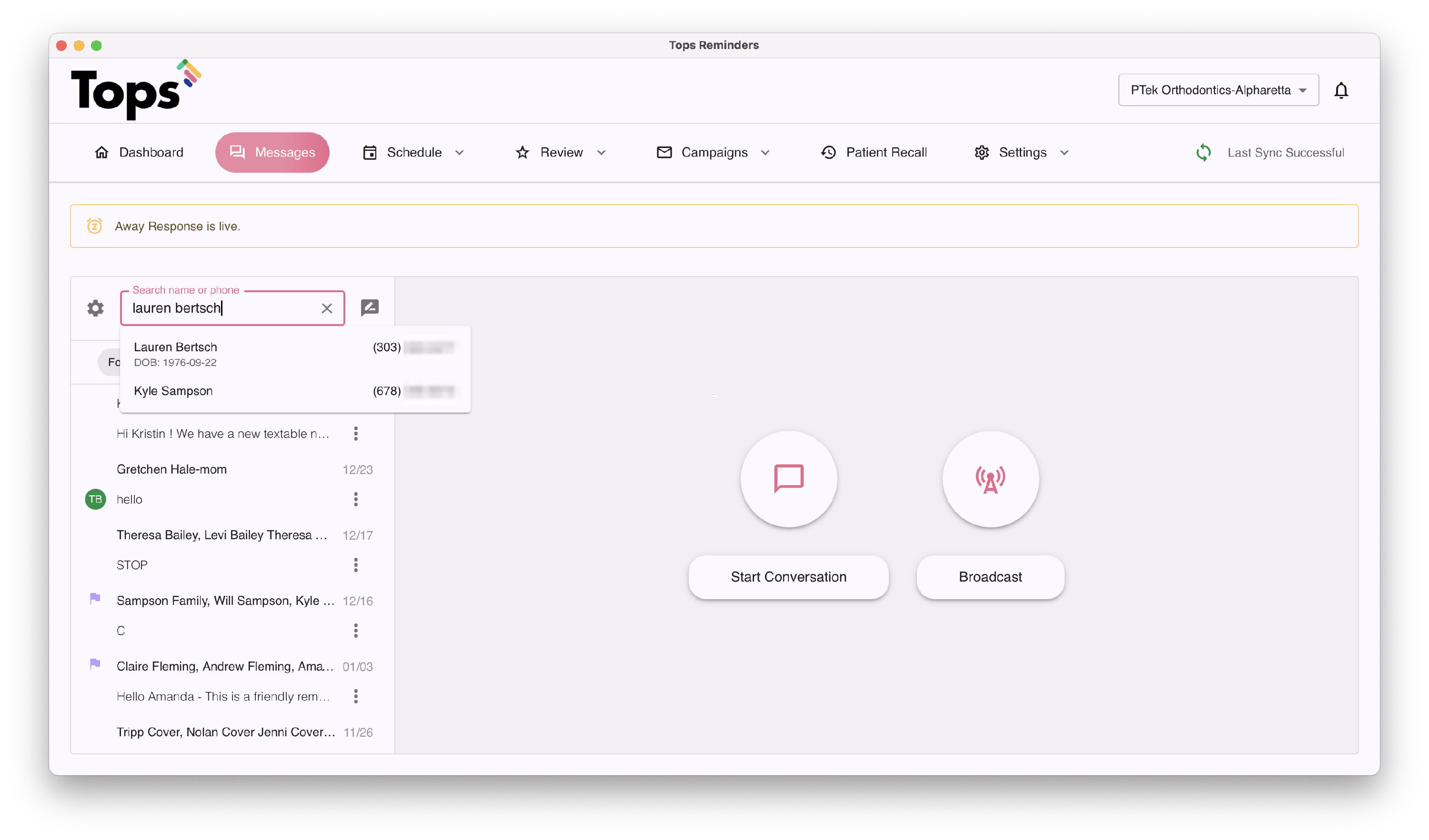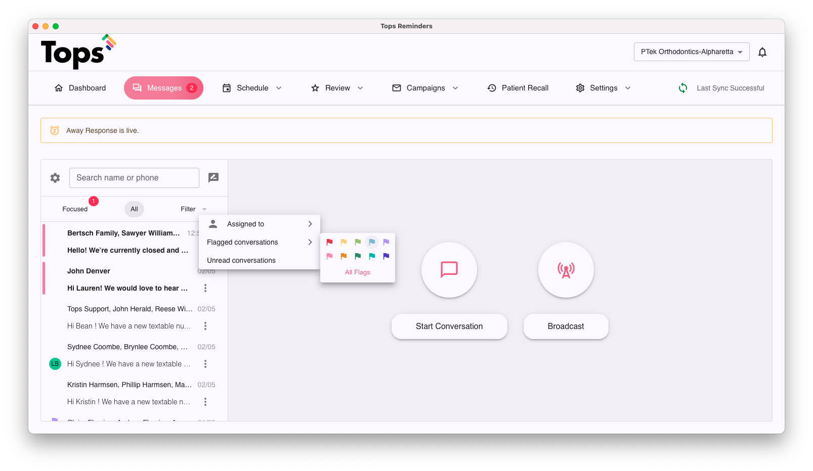 Message management is key when the Focus Inbox has been enabled. Once a patient or team member interacts using the texting feature, the patient will appear and remain in the Focused inbox until the text thread has been deleted. Once you delete the thread, the patient is removed from the Focused inbox. Their contact information can still be searched along with their history of automated messages.