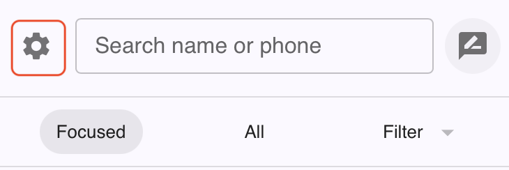From the Messages tab, click the gear next to the Name or Phone search field.