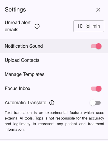 - From the Settings menu, you can also enable or disable Notification Sound to play an incoming message alert.