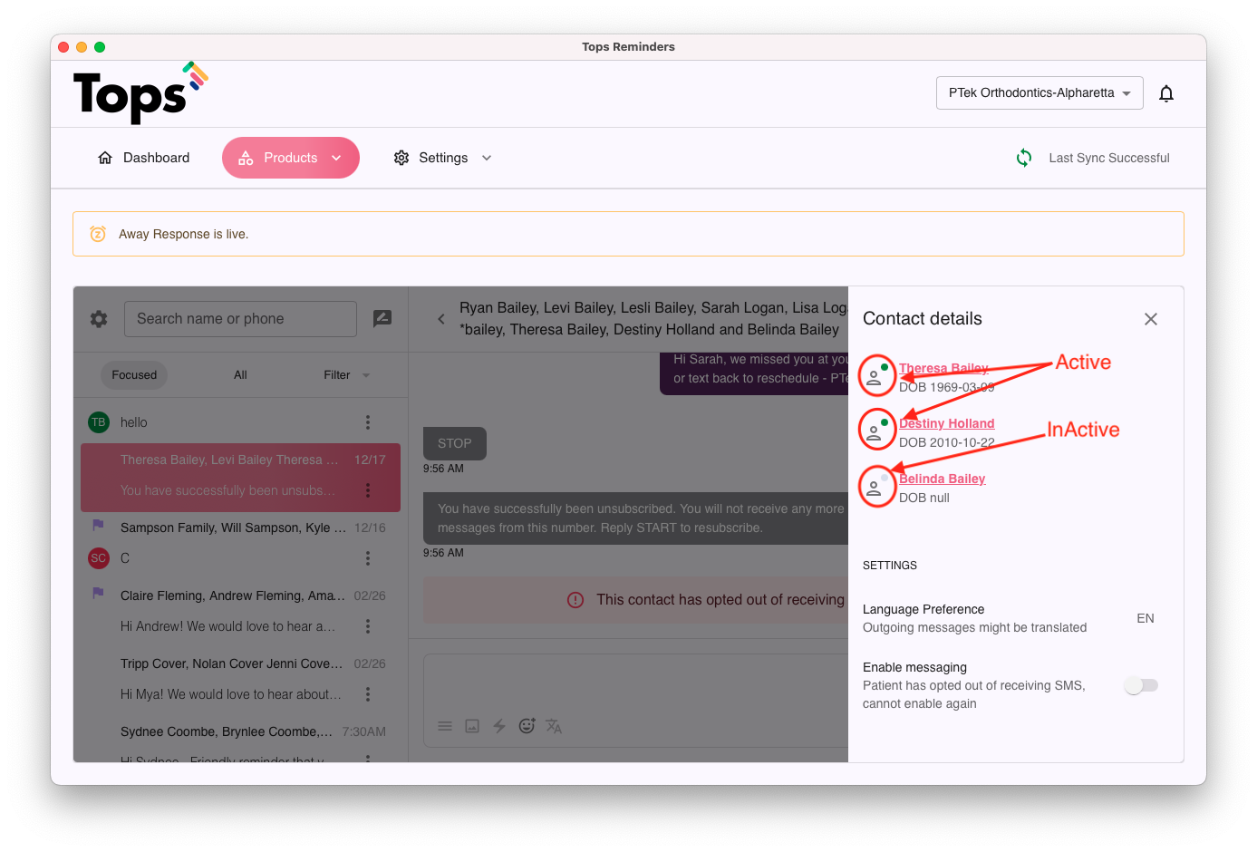 - Visually recognizing if linked patients to a phone number are active or inactive.