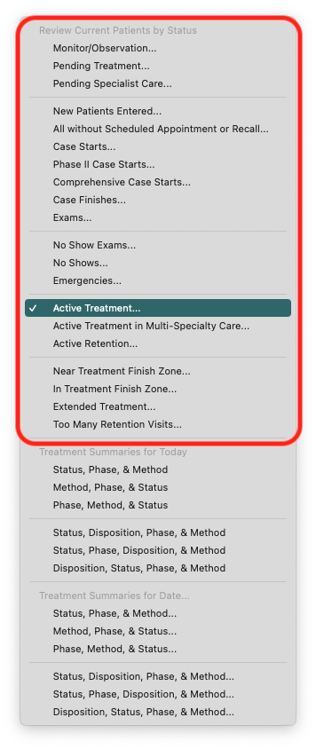 - Select a patient status (e.g., Active Treatment)