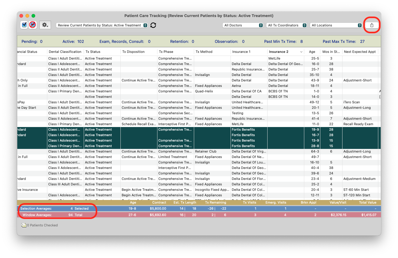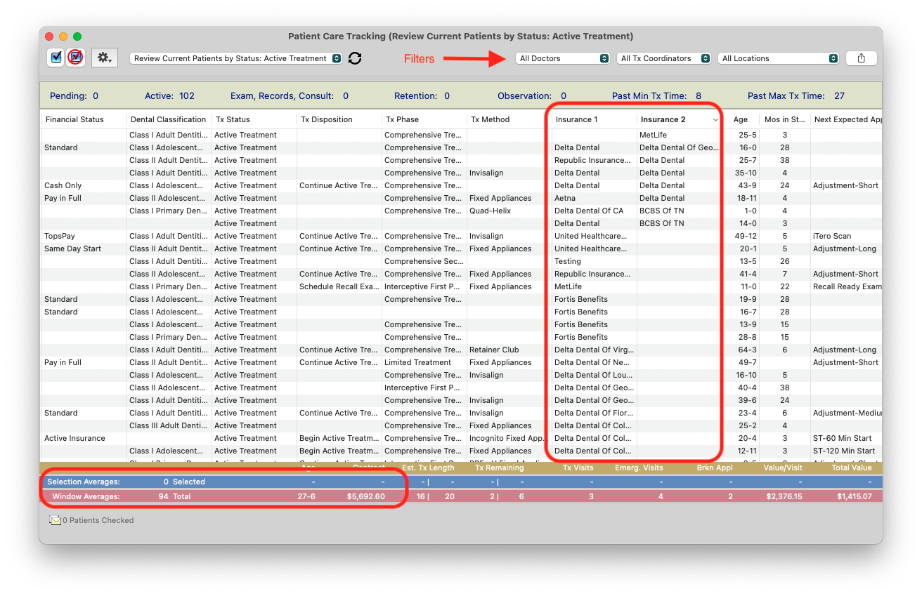 The D7 Patient Care Tracking is an excellent report to view your current patients by status and what insurance they have provided the practice. This report allows visibility into the current insurance carriers that your current patients are utilizing for possible orthodontic benefits.