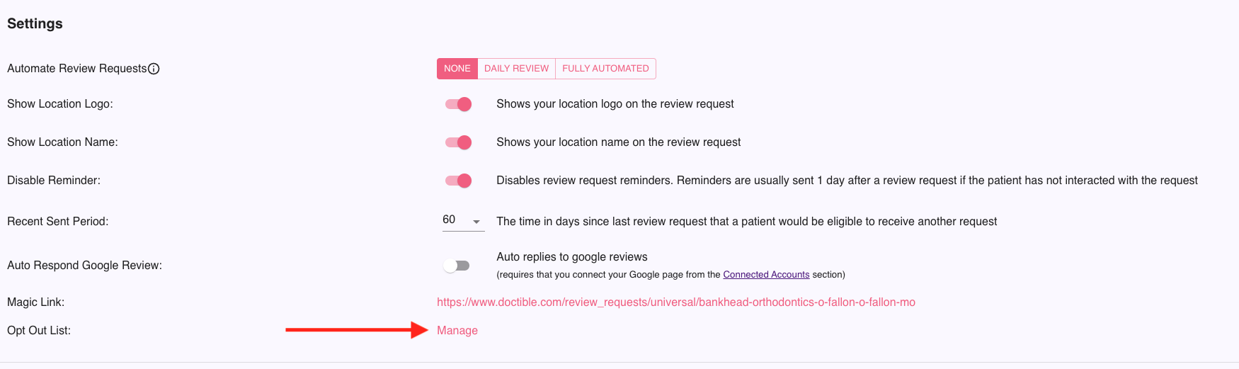 - From the Opt Out List: click Manage.